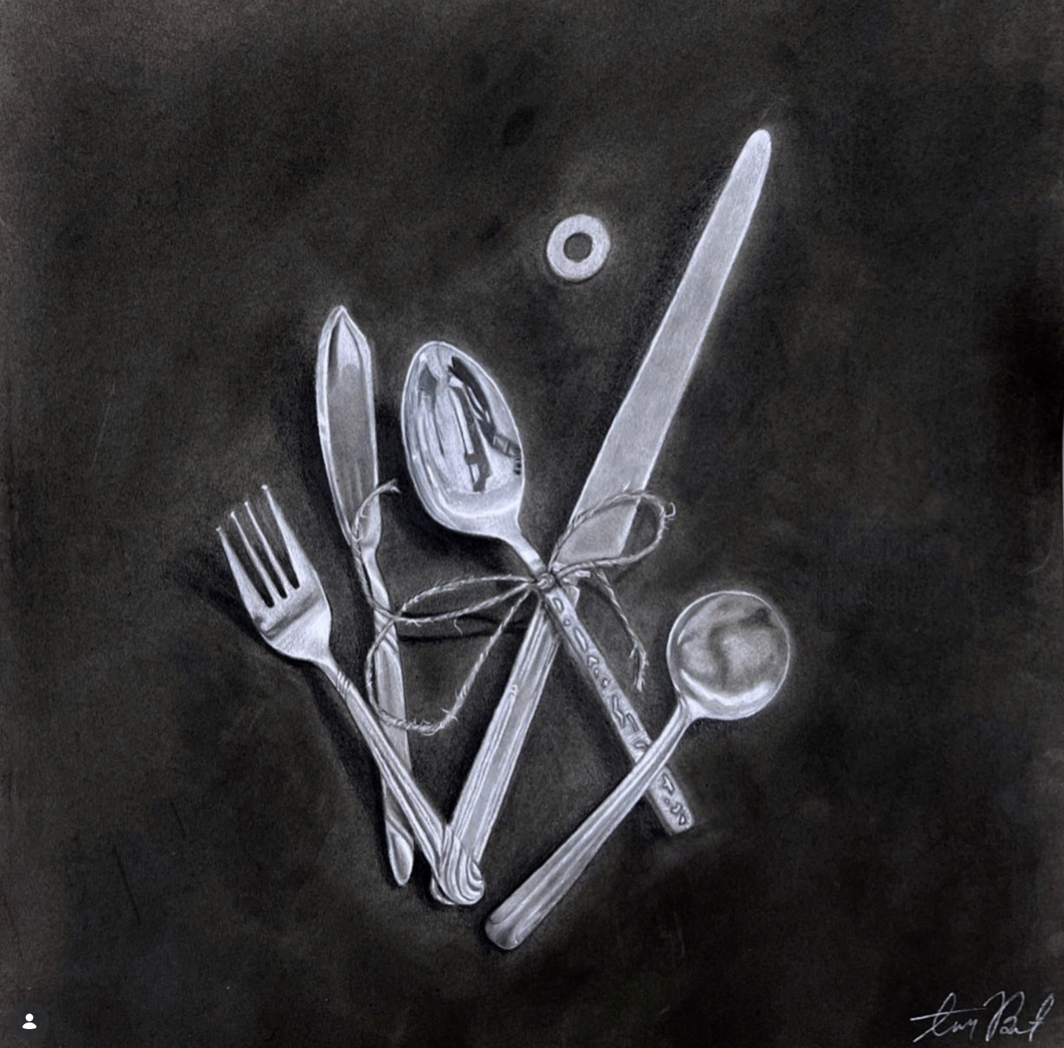 Silverware, Charcoal. 14’’x14’’ Fall 2022